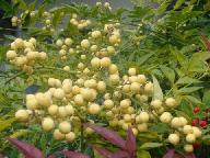 黄色の南天に良く似た実は「黄色いセンリョウ」だと云うことです。 有り難うございました。