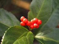 ふじもと様から風邪見舞いに「赤いセンリョウの実」の写真をいただきました。