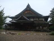 殿内には能舞台があり、神殿にならんで茶席「万祥軒」があります。芸術と宗教の一致を説く大本の教風をいかした代表的な建物です。また、来客をもてなす客殿と能舞台・茶室のある「春陽閣」とも渡り廊下でつながっています。