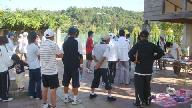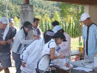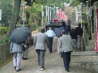再びバス二台に乗り、ガレリア亀岡に向かい出発し昼食をとる。午後は雨の中を「能勢妙見山」を参拝した。