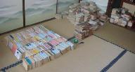 「あかさたな・・」順に分類した本を一度、角に寄せる。
