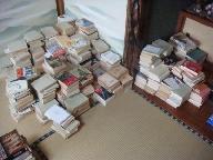 先週の水曜日の亀岡大本天恩郷行きは、午後の「能勢妙見山参拝」から雨になり、夜のテニス練習も雨で流れた。日曜日は運動不足解消をと考えていたがまた雨天で、段ボール箱入りの文庫本、本棚の文庫本を引っ張り出し座敷に広げた。