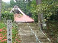頂上には延暦二十一年の富士大爆発の際噴出されたといわれる霊石を安置し、ミツ葉の松が植えられている。