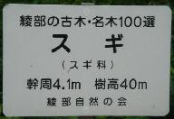 綾部の古木名木100選 No.29 スギ スギ科 幹周:4.28m 樹高:17m