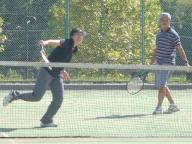 連休の祭日に綾部市テニス協会恒例の「第9回テニス祭り」が高倉運動公園テニスコートで開催された。当日の参加者34名が7名づつ5チームをつくり、ダブルス試合3対戦と、エキジビジョン・マッチ1試合を総当たりで行った。参加者が全員4試合以上楽しめる和気藹々のテニス三昧の一日となった。