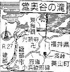 滝は綾部市街地から28km離れた古屋地区をさらに約1km奥に入った地図上の府道:綾部-美山線の洞峠ふもとの堂奧谷にある。幅20cm程度のけもの道から残り約300mは道が消えている。5段滝になっており、落差十数メートルの滝をはじめ谷川部分を含め、流れ落ちる全長は百メートルはあろうかと思われる。周囲に野生のアジサイが咲き乱れ、トチの巨木が茂る谷間にしぶきを上げて流れる。