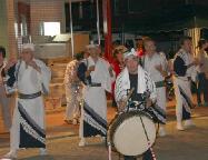 音頭取りの歌と囃子の合の手、 太鼓や三味線の鳴り物に合わせて人々が踊る。 荻野会長によると、 三味線が取り入れられたのは昭和54年からで、 それまでは太鼓だけだったそうだ。