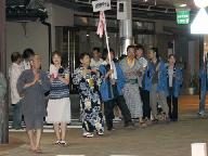 西町アイ・タウンで行われた「第34回あやべ盆おどり大会」を取材してきた。雨が心配されたが降らずにもった。市内から18連:450人余りの出場となり盛大に行われた。