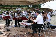 河原の川まつり会場は、カンカン照りで暑く、暖房完備とジョークが交わされていたが、この夏雲を映す風景に涼しさを感じた。