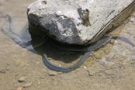 さかなつかみの「うなぎ」が放された。生きの良いうなぎが泳ぎ回っている。