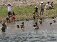かなり広い水面を逃げ回る魚を素手で追うのは大変。素手で魚を掴まず、袋の口を広げてすくおうとする風景も見られる。しかし二匹目は獲った魚が逃げるので、この方法は出来ない。