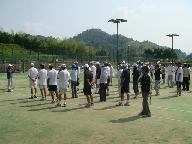 昨日は綾部市テニス協会が主管で、舞鶴市、福知山市、宮津市から選手50名を集め「第15回四都市熟年テニス大会」が開催された。6人づつ8チームに別れ、A/Bブロック4チームのダブルスゲーム3対戦を行い、最後に順位決定戦を行った。