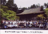 ・大きな歴史建造物をバックに空や塔なども入れ、背景色は白壁~黒壁など。天候は快晴~逆光~雨天直前。80数名も横に並んだ人物は、背景の建物からかなり離れ、画像の最下部(足下の地面)から30%以下(頭部)の範囲。