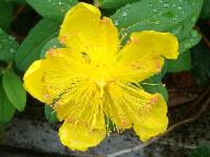 京都府植物園でプロと思える写真家が雨に濡れたこの群生する花を撮っておられ、また湖南三山文化財めぐりをした時に琵琶湖畔で見かけた花の名前を、「ヒペリカム・ヒドコート 別名 : セイヨウキンシバイ」と、『Hide and Seek