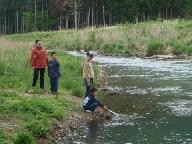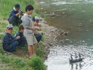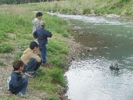 遊びに興じる内にラジコン操作を一時忘れ、船は対岸近くの本流に乗り入れた。早い流れでこちらの緩水域に戻れない。仕方なく対岸の岸辺の方に舵を切り接岸させる。子供とは云え慣れたものだ。