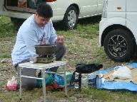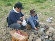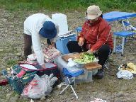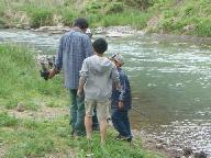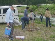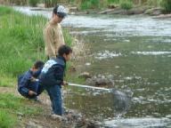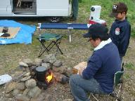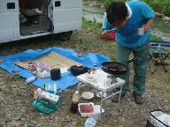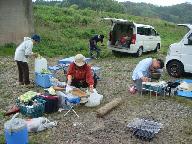 予約を申し入れた君王山キャンプ場は、専用予約が入り全面的に使えないとのこと。子供を乗せて先発隊が上林に出発。上林川に網を仕掛けてからバ-ベキュ-の場所探し。雨を考慮して橋の下・・。良い場所が見つかったと携帯で連絡が入り、食料、キャンプ道具一式を積み込んだ車3台に分乗して出かける。