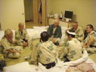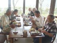 昨晩は深夜の2時半頃まで話し声が絶えなかったのに元気な銀嶺会の一行。プレ-中なのは92才のUさん。