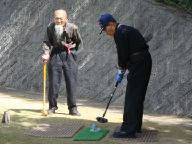 シルバースキー・クラブの「銀嶺会」納会が福知山市三和町の三和荘で行われたが、グランド・ゴルフのコース設営が一般の運動場では手間がかかるので、一度綾部に帰り、丸山スポ-ツ公園のグラウンド・ゴルフ場(全面芝コ-ス)に移動した。私は他の所要を済ませてから写真を撮りに行くと、サザンカ・コ-スでのプレーを終えたところであった。