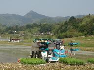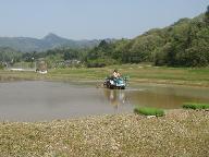 例により手分けして会報の配布に出かける。明日からガソリンが値上げになるので、いつもと異なり遠方から配布した。終了後ガソリンを満タンにしておこうという魂胆である。於与岐町の会員宅に届けると、田植えの準備作業が進められていた。