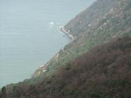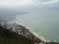赤煉瓦で作られた待避壕が、いくつも車道に沿って頂上付近に並んでいる。建物の側面などに階段があり上に出られる。出ると海に向かって緩いスロ-プの平地がひろがり、崖縁にはハンググライダ-が飛び立てる木製の平面ベ-スが設けられている。三カ所の飛翔基地があった。この平地からは素晴らしい展望が開けている。