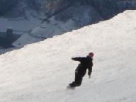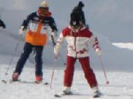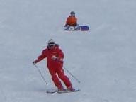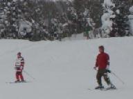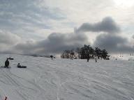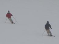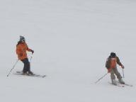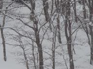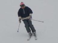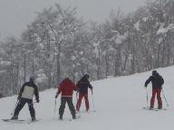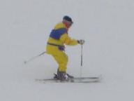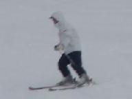 食後は猛吹雪の悪天候。激しい降雪の中を滑ると、ゴ-グル式のサングラス内側まで雪が入り、曇って視界が効かない。風雪用のゴ-グルや庇のついた帽子は、途中の駐車場に置いた車に入れたまま。見えないまま滑ると危険きわまりない。やっと集合時間になり、グラスを丹念に拭いて、ベ-ス・ゲレンデを滑り降りたが、滑り始めると直ぐに雪が入り視界ゼロ。グラスを外して目に降りしきる雪を当てながら下りた。