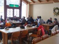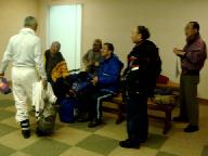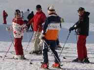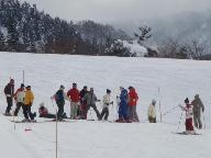 銀嶺会スキ-ツア2日目の白山瀬女スキ-場、集合時間が来たので下山のため集まっている。ゴンドラリフトに乗って上がった標高を、麓まで滑り降りて駐車場に着き、再び三台の車に分乗して、宿泊所の白山白峰温泉・白山苑に帰着した。2泊目