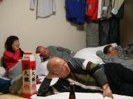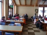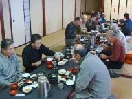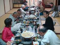 食後は宿泊の一室にあつまり、ビデオ取りした各自の滑りを観賞。コマ送りで映写し、ベテランからフォームや重心、両足のバランス、タイミングなど詳しい指導もある。