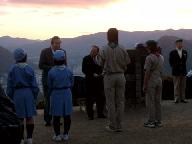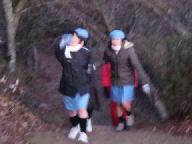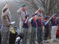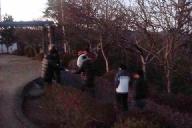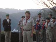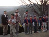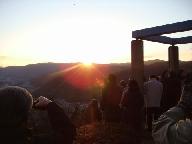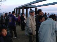 2008年元旦6時20分 寺山頂上の平和公園を目指す。高気圧に覆われ晴天、前夜は冬の星座が素晴らしかった。明けかけた空に星が残っている。期待した降雪はなく、雪の気配の全くない正月となった。懐中電灯を灯して山道を急ぐ。波多野記念碑登山口に、ボ-イスカウト、ガ-ルスカウトの子供達が集合中だった。