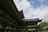 ここから駐車場へ出る(南門)ル-トがあったが、見落として再度、ミュ-ジアム鳳翔館の中を通り抜ける。午前中の時は鳳凰堂を一周する路に出たはずが今回は出られず、梵鐘の脇を通ってまたここに出てしまう。仕方ないので誰1人逆行する人が見あたらない中を自分たちだけ逆行する。
