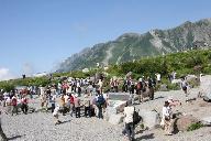 地鉄・立山線沿いに千寿が原駅(立山駅)に車を走らせ、駅前広場の駐車場に運良く駐車できた。美女平までの登山ケ-ブル、室堂タ-ミナルまでの登高バスも空いていて順調にこの展望台・室堂平の登山口に着いた