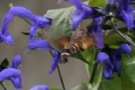 先日もNHKで「ハチドリ」の生態を放映して、「ホバリング」して密を吸っている映像を映していた、「ハチドリ」と「マルタマハナバチ」など「蜂」との比較は映像や書物で良く見かけるが、この「蜂雀:ほうじゃく:蛾の仲間」との比較を見たことがない。「蜂」よりも「蜂雀」の方が「ホバリング」して密を集める様子など、「ハチドリ」にそっくりだと思う。