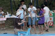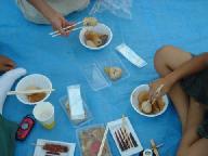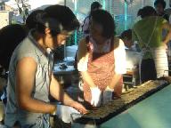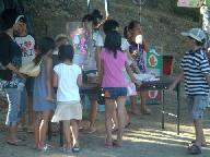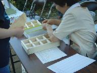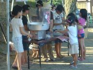 あらかじめ組長を通じてチケットの申し込みと配布が終わっているが、追加の注文を受け付けている。また来場者に「福引き券」、「ビンゴ・ゲ-ム」のカ-ドを渡している。