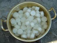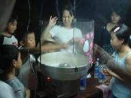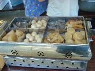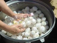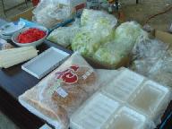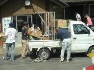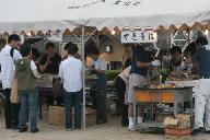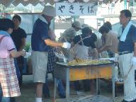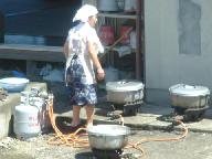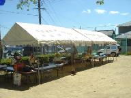テントを借りに行ったり、公会堂の床下物置から出したりする。全部で5張りを立て足を折って伏せておく。屋台店の道具やガスボンベも手分けして借り、軽トラで運び込む。女性(組長夫人)はおでん作りの鍋などを準備