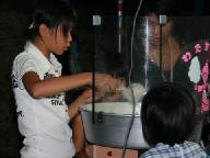 中神宮寺納涼祭の受付で屋台店のチケット販売の準備中