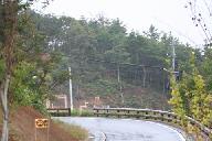 雨が小降りになったので、施設の少し上の展望台の駐車場で写真を撮った。車道は小山を一周するようになっており、遊歩道は小山の中にも付けられていた。