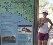 出発点の登山口に辿り着き、ダイヤモンド・ヘッドのハイキング終了。三角塔の案内板を写真に撮る。内容はパンフレットと同じ。