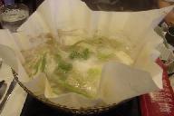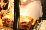 サロ-イン・ステ-キを切り分けながら焼く。その間、包丁などの鳴り物、胡椒瓶のジャグリング等のパフォ-マンス演出もたっぷり振る舞われる。