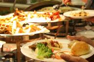 パン、ご飯、麺類、肉、魚介類、サラダ、ケ-キ・・・たくさん取ると食べきれないので控えめに・・・
