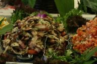 ハイキングの後、ワイキキ水族館を参観、宿泊のプリンスホテル・ワイキキ近くまで戻り、アラ・ワイ・ヨット・ハ-バ-に面したレストランで昼食をとった。日本語のメニュ-はなかったが、注文したのはこのエビ料理。ボリュ-ムがあり美味しかった。