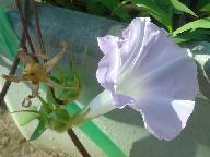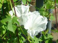 シルバ様から種子をいただいた「Doblog朝顔」のホワイトが最後に咲き、ピンク、ブル-の減った中で全盛を誇っています。