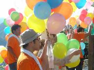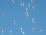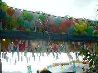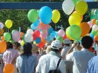 主宰者に問い合わせたところ、この風船は「エコ風船」で、メモ用紙など全て、水に溶け、土に帰る、「地球に優しい環境負荷の少ないもの」を使われています。