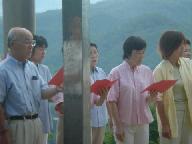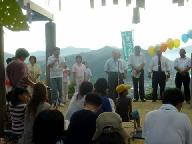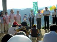 毎年の恒例行事だが、今日は「ユキヒロ平和記念ライブ」が続けてあるので人が多い。歩いてしか登山できないので健康な人ばかりだが、ご高齢の山崎綾部史談会会長などの姿も見える。元旦とお盆の早朝7時に開催されるこの「平和祈願祭」は、さしずめ健康のリトマス試験紙だ。例えば顔を見せられない市議会議員さんは次がない