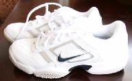 ハワイの夜の散策でDFSセンタ-街に出かけたとき、家内が突然一つ手前の「ナイキ・タウン」で降りて店によると言い出した。さっさと「ナイキ店」の3階(女性コ-ナ)に上がっていったので、私は1階に置き去り、バスケ、ゴルフ・・の専門別コ-ナを見て回ったついでに買ったのがこの「テニス・シュ-ズ」。店員がすぐに世話に来て、サイズを聞き計算機で換算。上からリフトで合ったサイズの靴を降ろし試着する。ナイキ・サイズは小さめらしく、更に大きなサイズを再度取りよせて合格。特別価格の50ドルだった。地元で買う予定だったのが安く手に入った