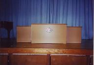 同封の写真のような校章入りの立派な演台を購入させていただきました。さっそく卒業式、入学式など、学校行事を真新しい演台により、とり行うことができました。ご厚意に感謝いたしますとともに、今後大切な学校備品として末永く活用させていただきたいと思っております。
