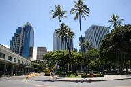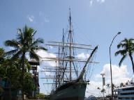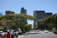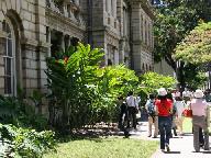 ホノルル・ダウンタウン見学ツア-は、マリタイム・センタ-(乗車)→ダウンタウン・ヒストリカル街(車窓)→キング・カメハメハ大王像(下車)→イオラニ宮殿(遠望)→カワイアハオ教会(車窓)→ホノルル市庁舎(車窓)→ハワイ州庁舎(下車)→ワシントン・プレイス(車窓)→マウナケア・マ-ケットプレイス(下車)の見学コ-スを「オリオリ・トロ-リ-」に乗り回ってきた。中華人街入り口(MAUNAKEA)
