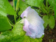 シルバ様から種子をいただいた「Doblog朝顔」の初咲きは梅雨に濡れて破れて咲いていました。次の花が明日にも咲くべく待っています。