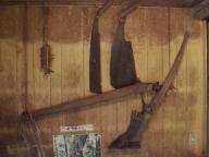 注、八幡宮本殿の建立は棟札によると江戸時代の正徳五年(1715)で、大工は若狭大飯郡日置村一瀬喜兵衛、彫物師は丹州(丹波のこと)桑田郡余野村の一瀬一之助である。社殿は府下では例のない六間社であり、平面から見ると中央に柱があるので、三間社を横並び配置した形に見える。内陣には仕切りがなく、神座を中央に寄せ、両端が空いている。造りはやや保守的で身舎(もや)正面に弊軸板戸が六間並び閉鎖的である。身舎向拝の蟇(かえる)股(また)は、足元が大きくふくらみ、松・菊・牡丹等の彫物をいれ、向拝中央の柱は虹(こう)梁(りょう)で抜き、蟇股の変わりに唐獅子牡丹の欄間彫物を加えている。昭和十年(1935)に若干の補修がされているものの、中世の形式を伝えた六間社は興味深いものです。