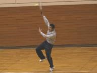 第二動作 捜す: 鉾で四方の地上を打つように。最後は雫を落とすように突き出す。