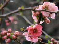 500本もあるという「桜」はまだ数本の開花であったが、いろいろな「ボケ」の花が咲き見応えがあった。ボケ(木瓜・放春花)は、中国から入り薬種として栽培されていたが、江戸時代に花としても定着し、多くの品種が生み出されたとある