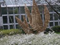 ツバキの花のない6月から7月にかけて、ツバキ科ナツツバキ偏のナツツバキが咲く。ツバキに似た純白の清楚な花である。ナツツバキは落葉樹で、種子も偏平で小さく翼がありツバキとは異なる。(会場でいただいたパンフレットより)